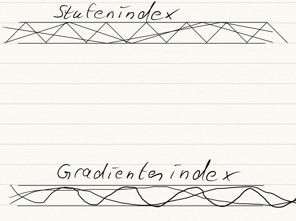 Die Brechzahl nimmt von Kern zum Rand ab. Unterschiedliche Moden des Lichtes werden damit Wellenförmig in der Glasfaser gelenkt. Man kann sich das so vorstellen, dass in der Faser verschiedene Moden immer in Wellen durch die Faser geleitet werden.